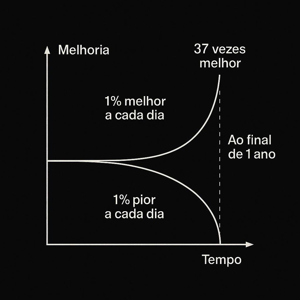 Imagine a seguinte matemática: se você melhorar 1% a cada dia, ao final de um ano, você estará 37 vezes melhor do que quando começou (1.01^365 ≈ 37.78).